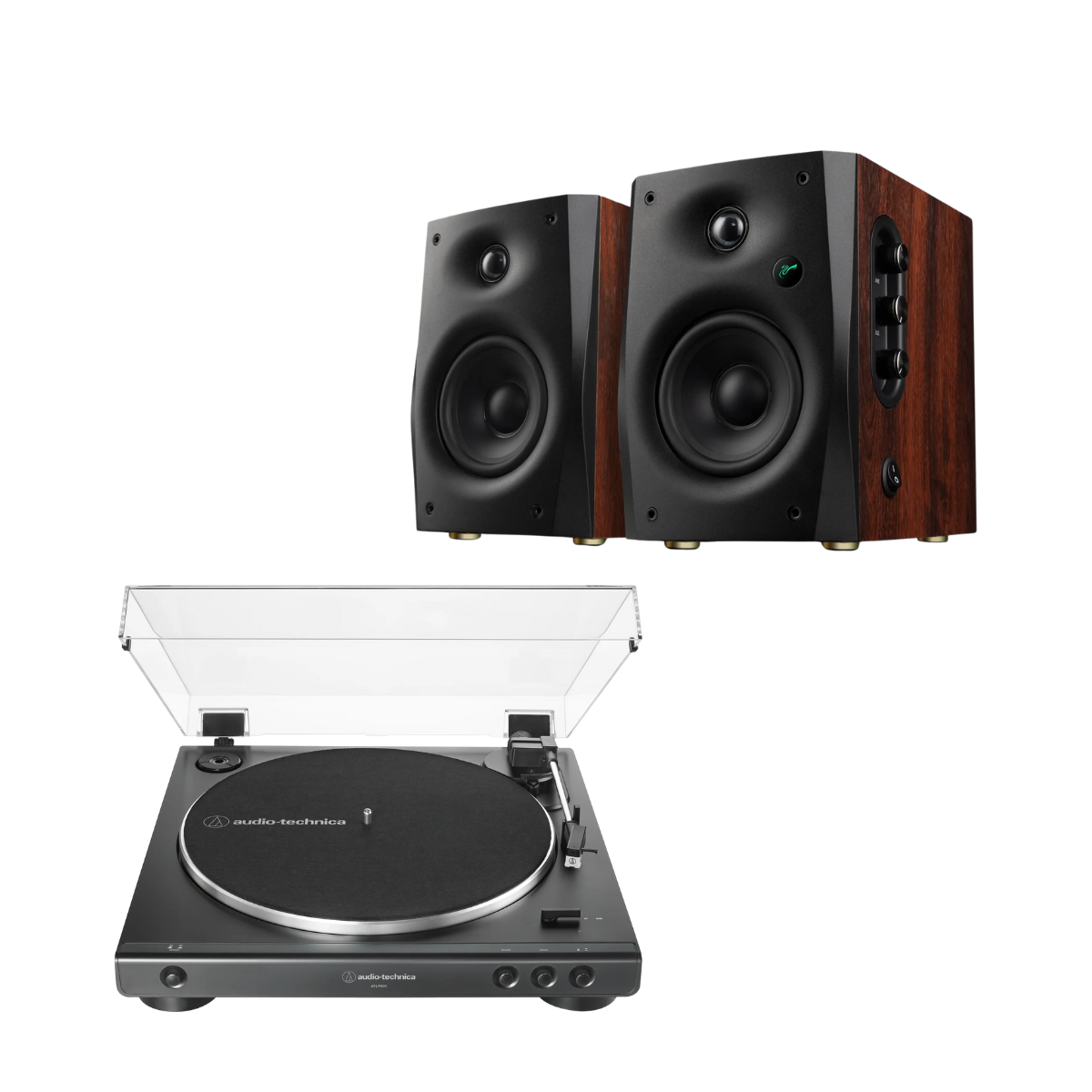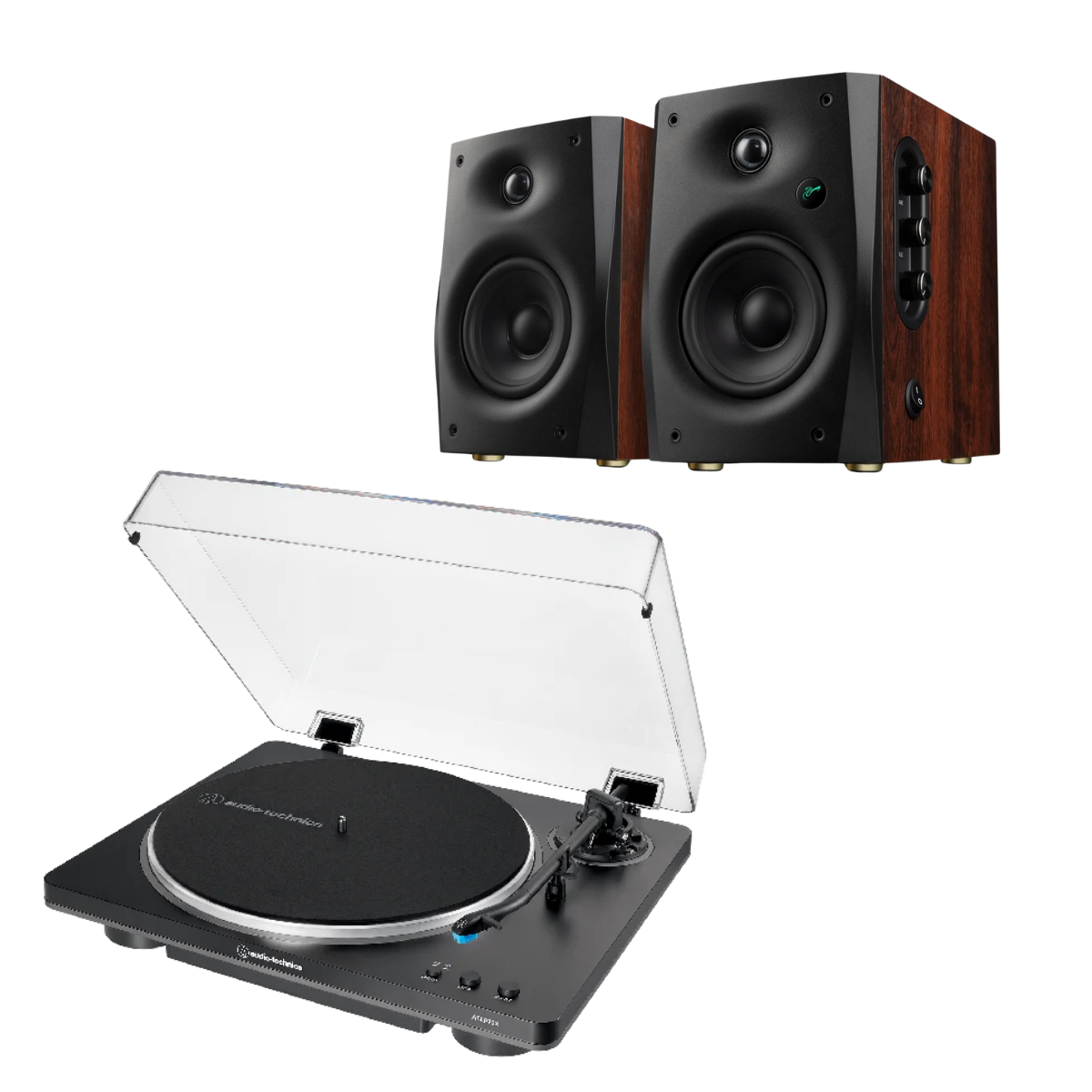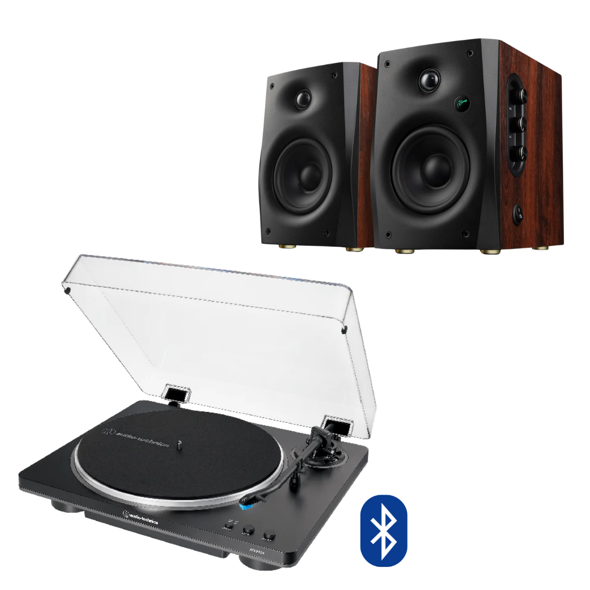 Tornamesa AT-LP60X + parlantes D1100 con Bluetooth y RCA.