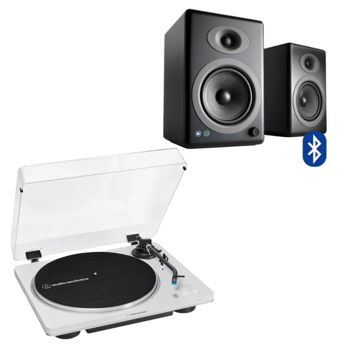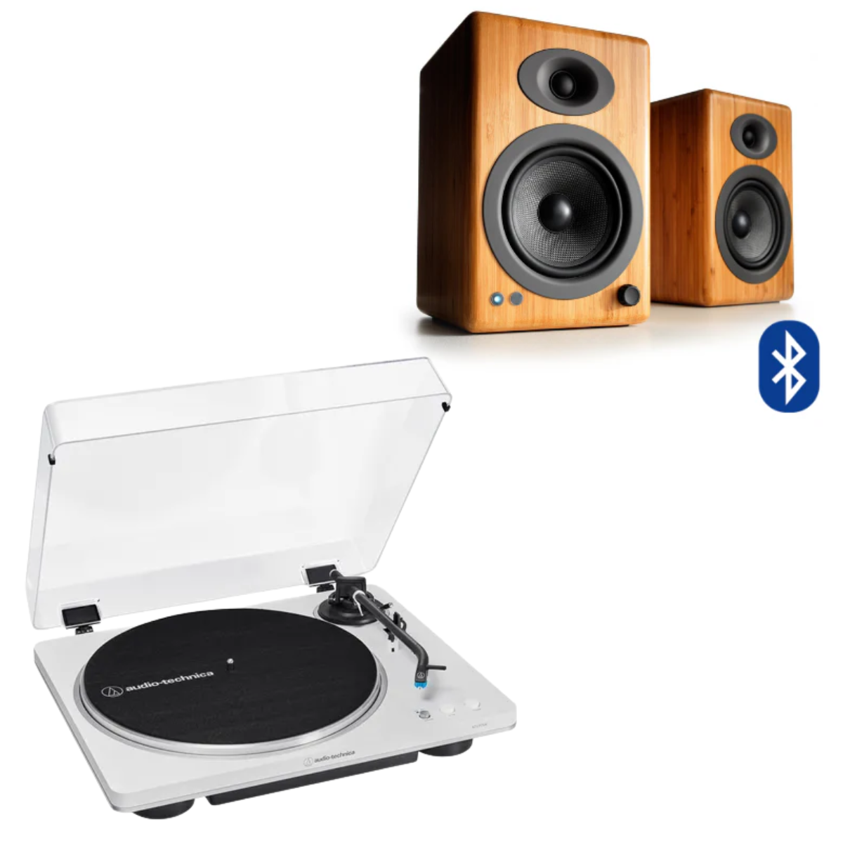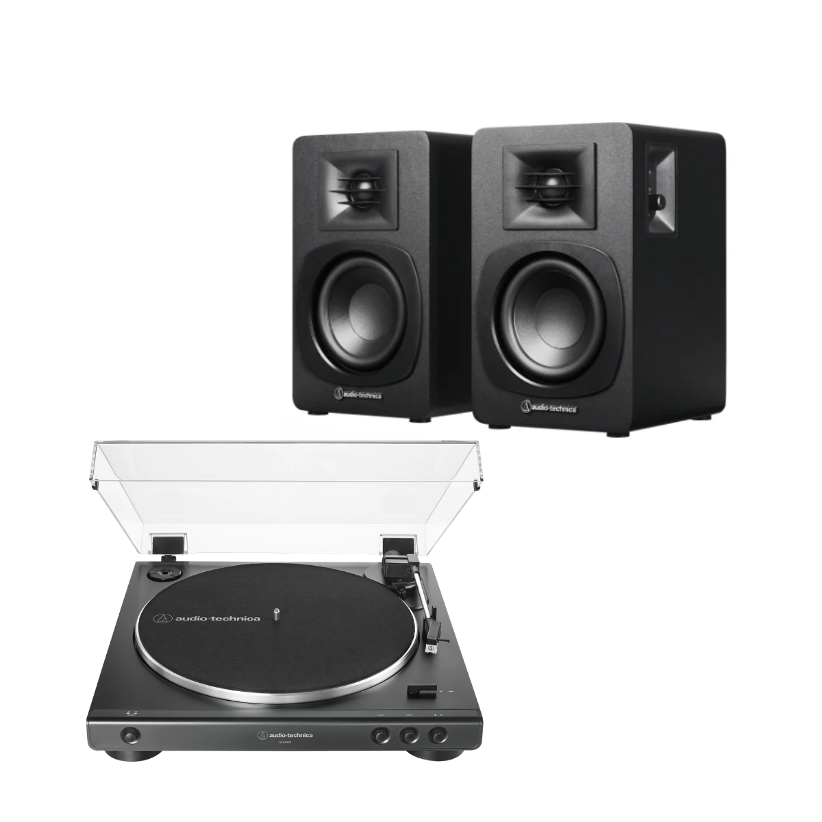 Tornamesa AT-LP60X + parlantes D1100 con Bluetooth y RCA.
