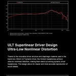 • Nuevo driver ULT de 50 mm: diseñado para linealidad, ancho de banda y baja distorsión; graves con pegada, medios limpios y agudos suaves.