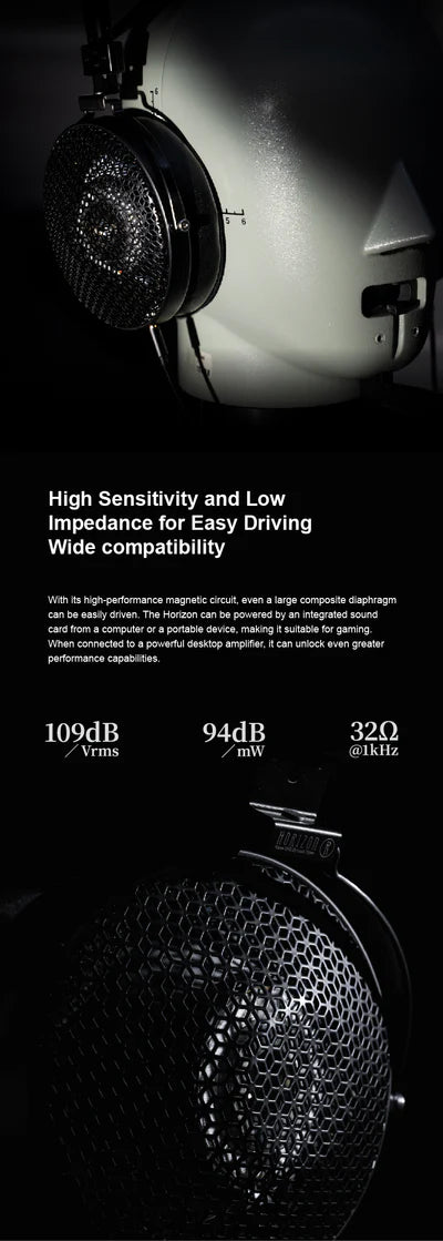 Los Horizon combinan un diseño ligero y un nuevo transductor dinámico ULT de 50 mm con doble imán de neodimio para ofrecer baja distorsión, escena inmersiva y una tonalidad rica y equilibrada. Son fáciles de mover desde un portátil o dongle, pero escala con equipos más serios: ideales tanto para quienes empiezan como para audiófilos experimentados.