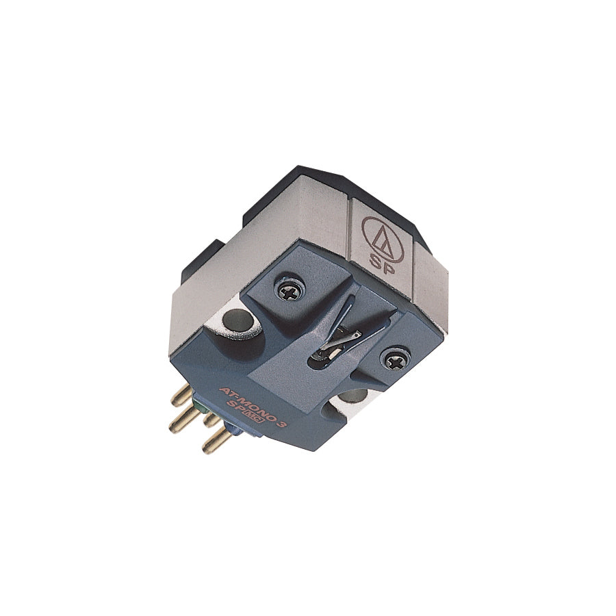 El modelo AT-MONO3/SP es una cápsula de doble bobina móvil de alto rendimiento (1,2 mV) diseñado específicamente para utilizar con discos monofónicos y de goma-laca de 78 rpm. Gracias a la configuración horizontal de sus bobinas de voz de PCOCC (cobre puro por proceso de función continua Ohno), la cápsula AT-MONO3/SP solo genera señal eléctrica en el movimiento horizontal, pero también cumple adecuadamente en la dirección vertical, lo que reduce al mínimo el desgaste de los surcos. Las bobinas de voz están conectadas en serie, lo que se traduce en una señal mono que se transmite a los terminales blanco-azul y rojo-verde del cartucho para cubrir ambas entradas de un preamplificador fonográfico estéreo.