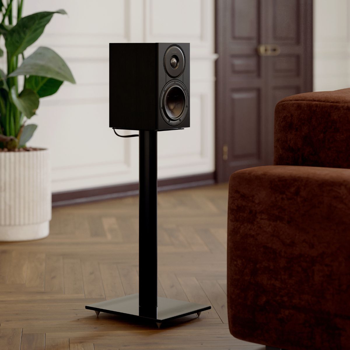 Funciona en estantes, soportes de pared o pie de parlante. Amplia dispersión: suena bien desde casi cualquier posición de escucha. Compatible con amplificadores de 25 a 100 W por canal.