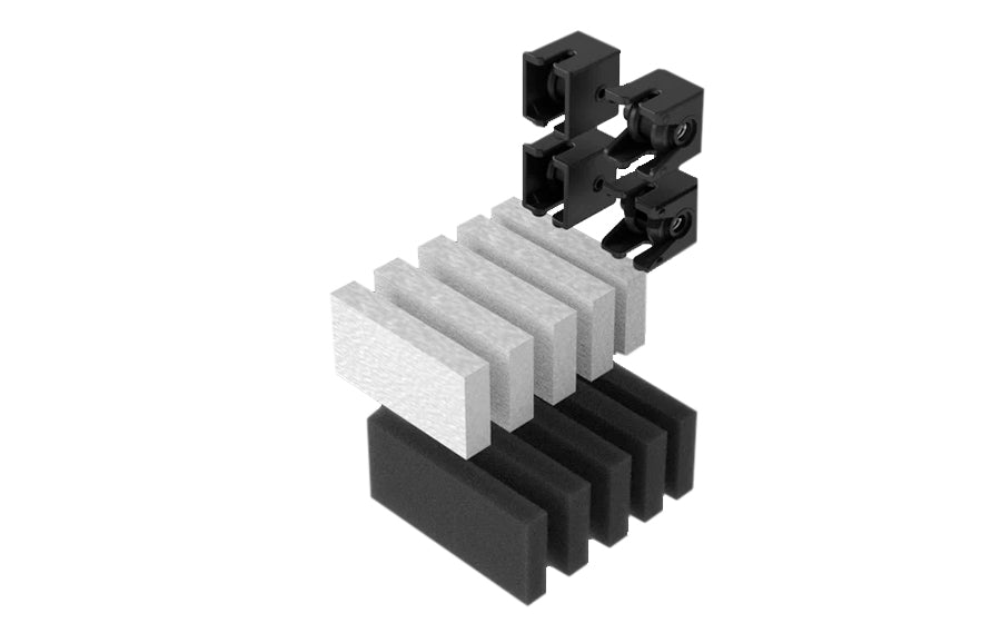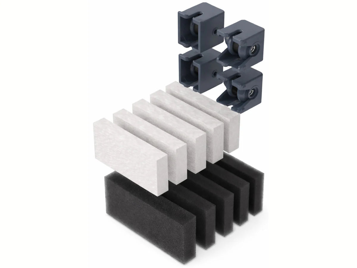 Kit de repuestos HumminGuru HG01 Dark Gray con ruedas, filtros y adhesivos EVA, vista frontal