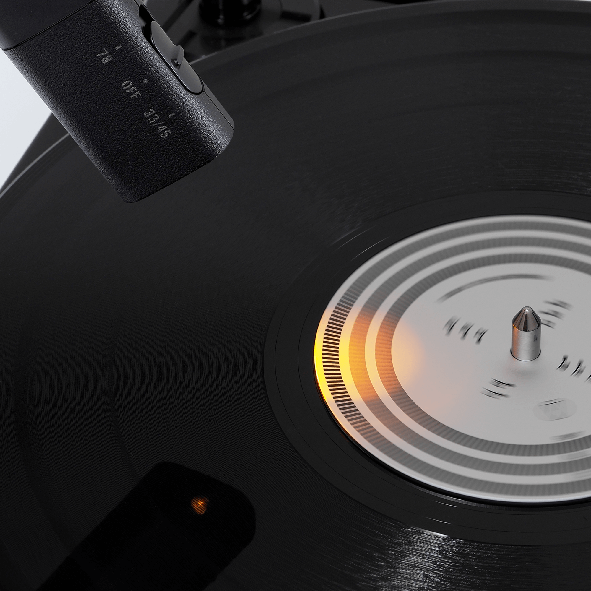 Velocidades: 33-1/3 RPM, 45 RPM, 78 rpm<br>