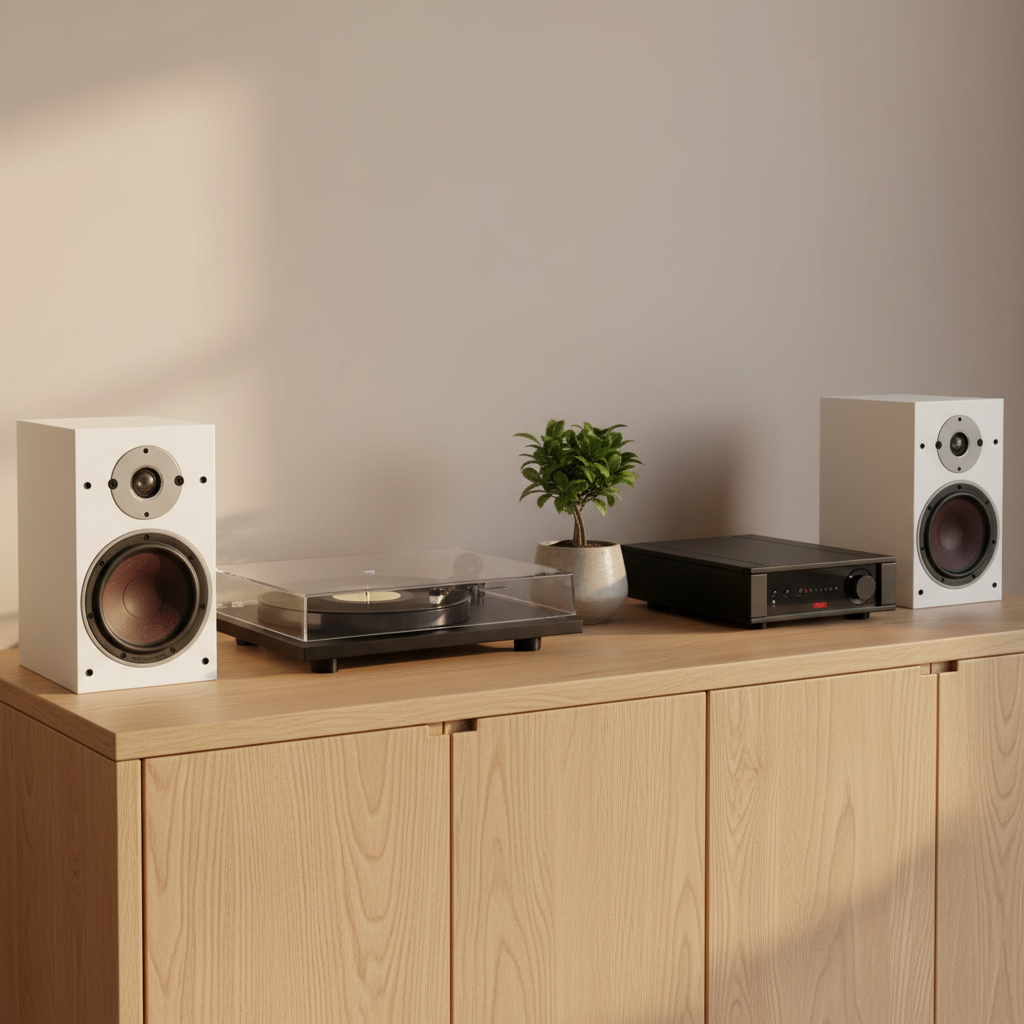 Parlantes compactos de origen danés, diseñados para ofrecer presencia, equilibrio y buena dispersión en la sala.