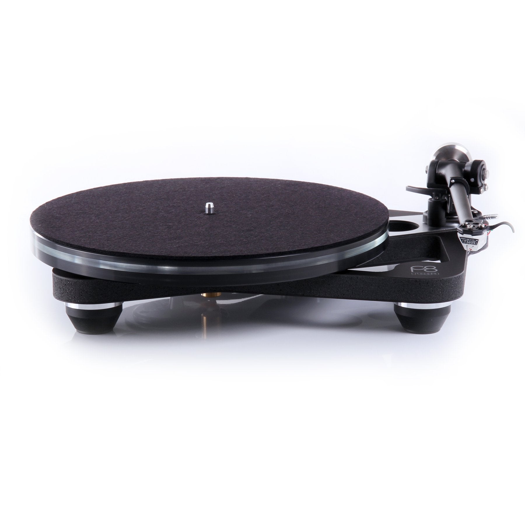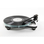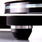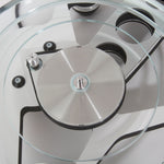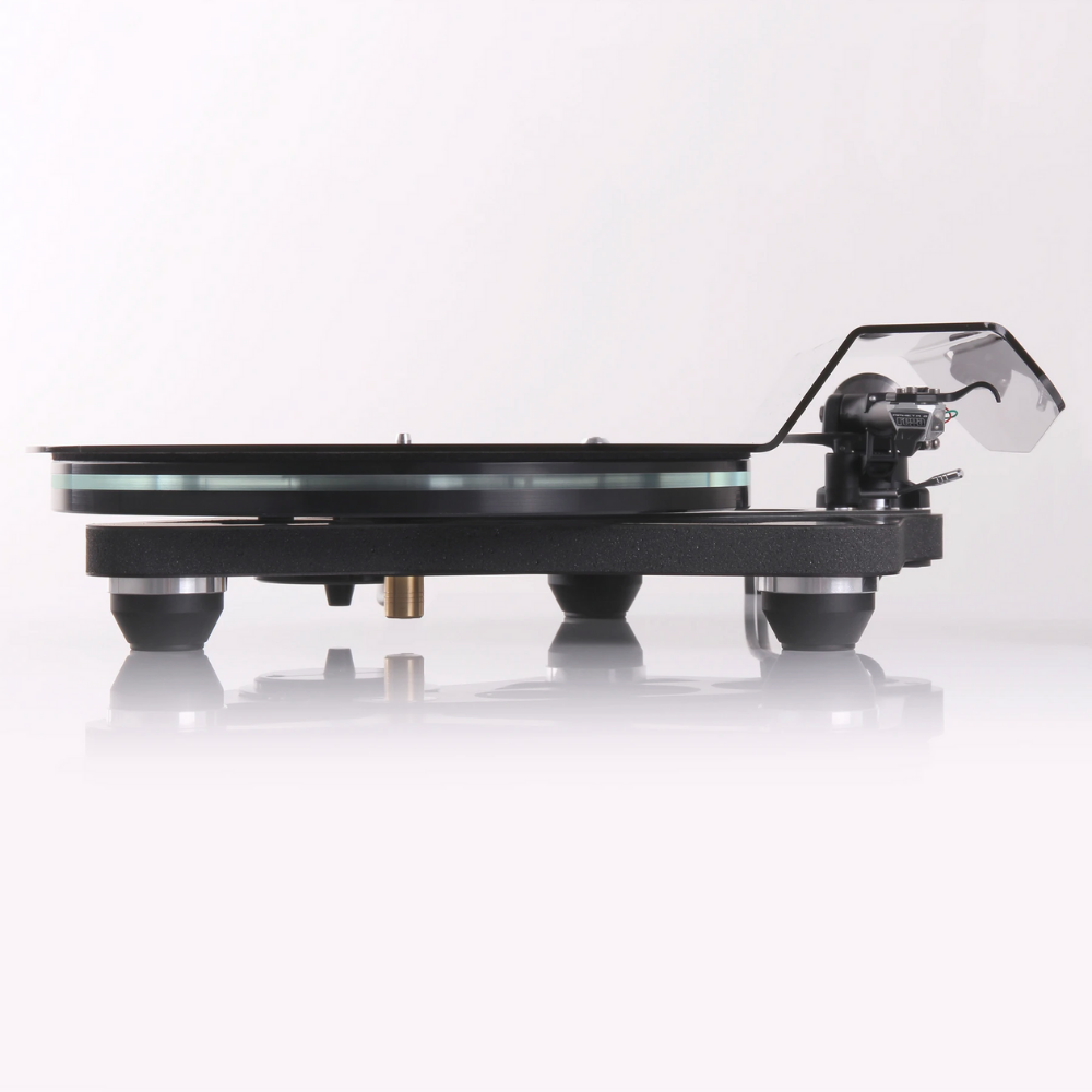 El plato de vidrio triple laminado, fabricado en colaboración con ingenieros británicos, distribuye la masa hacia el borde exterior para maximizar el efecto volante, garantizando una rotación constante y estable. Este sistema se complementa con las correas EBLT de nueva generación, resultado de tres años de desarrollo, que mantienen una tensión y elasticidad perfectas para un control de velocidad impecable.