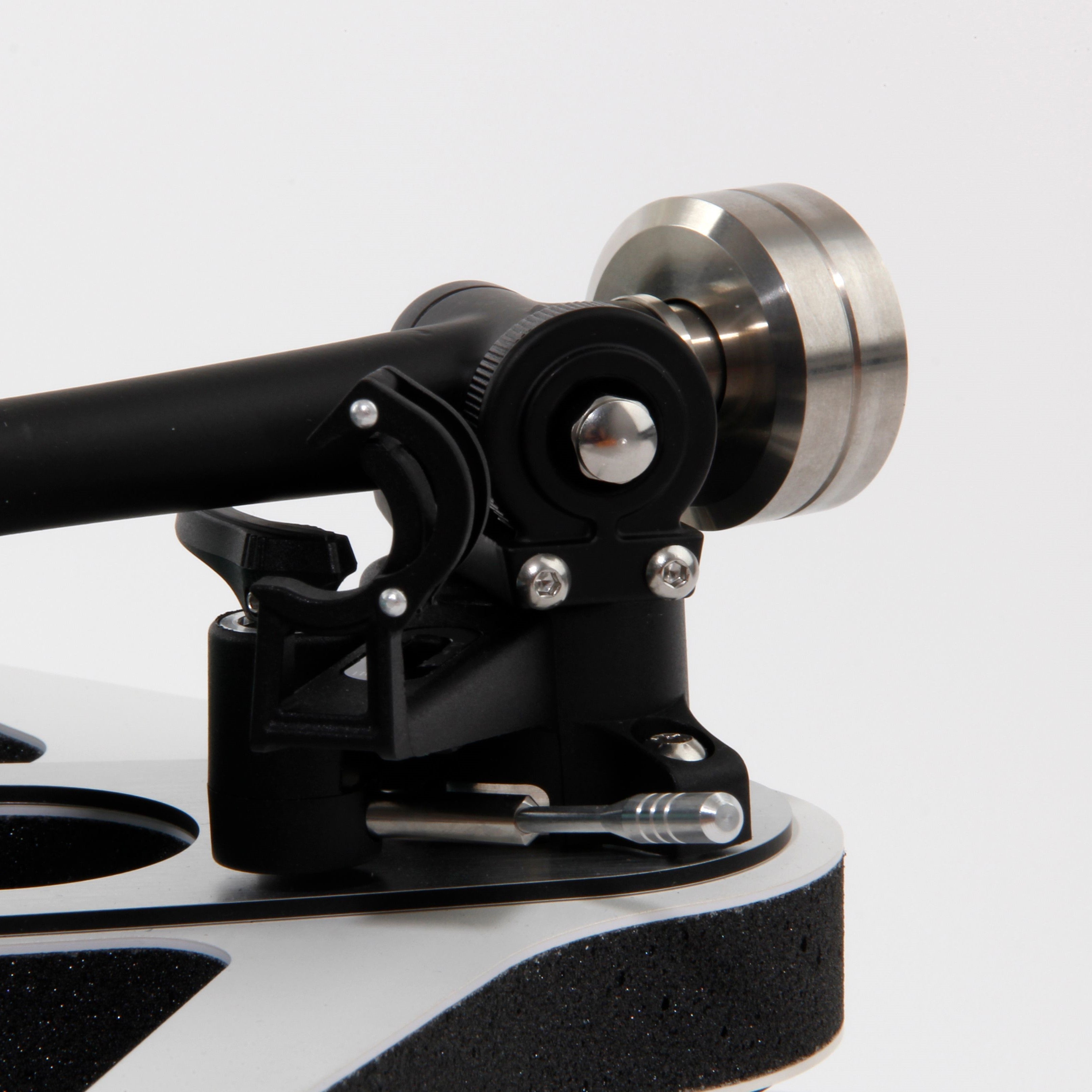 - Brazo de lectura Rega RB880 de precisión, con rodamientos ajustados a tolerancias inferiores a 0,001 mm y cableado de baja capacitancia.